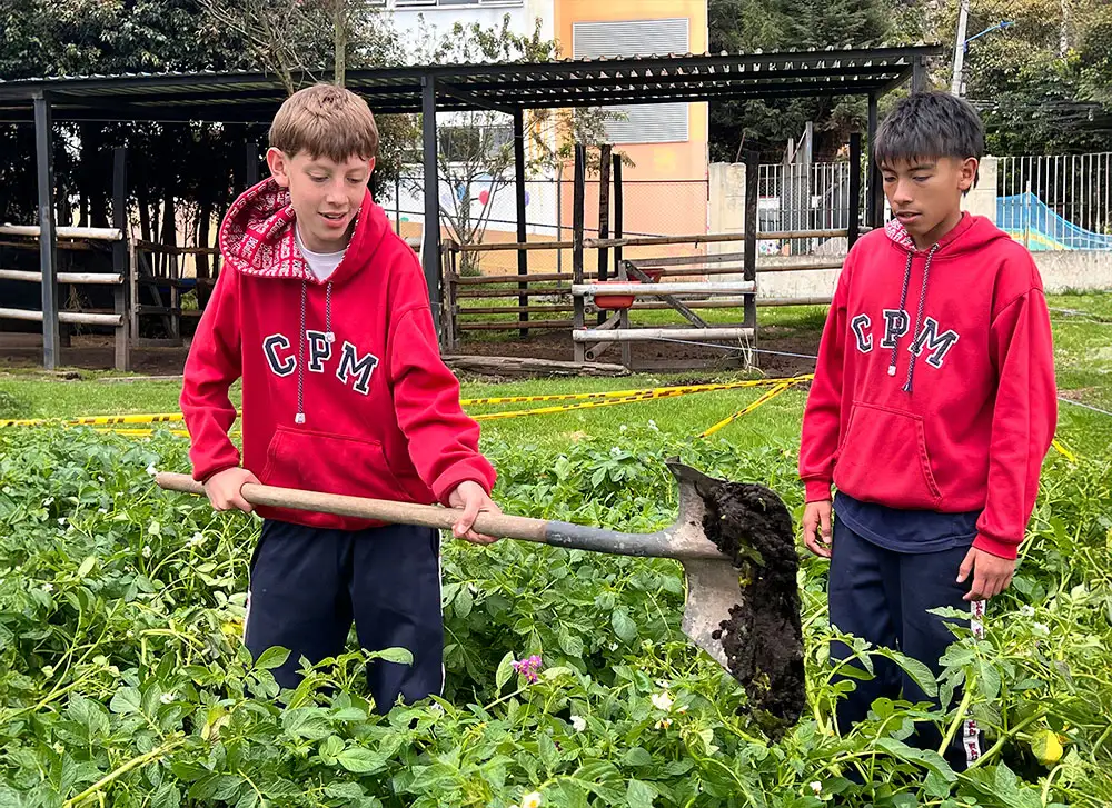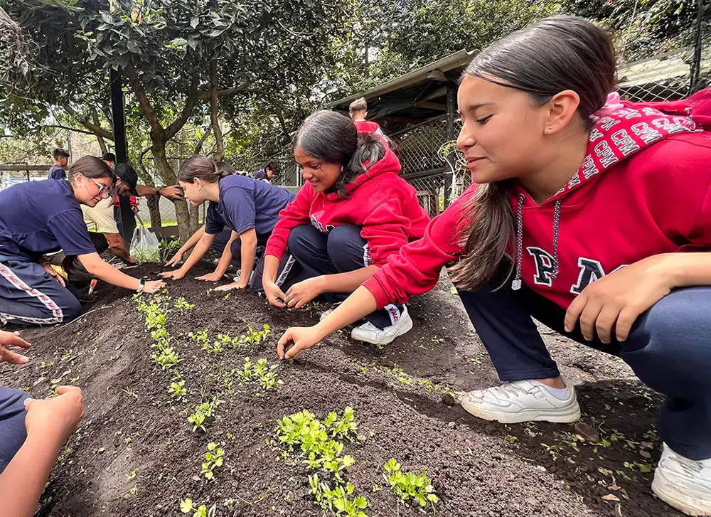 Aquí, nuestros estudiantes siembran, cultivan y observan los procesos de la tierra mientras aprenden sobre sostenibilidad, responsabilidad y trabajo colaborativo.